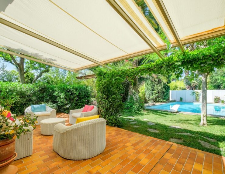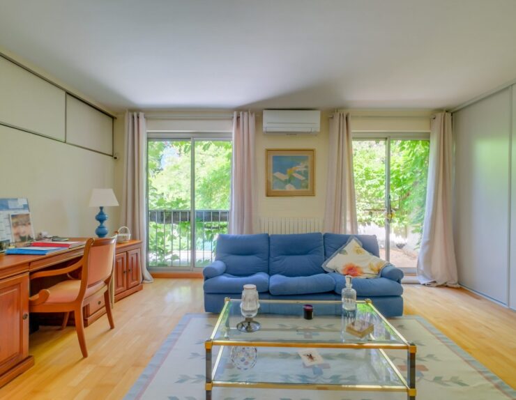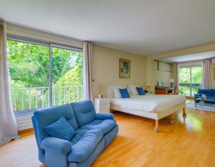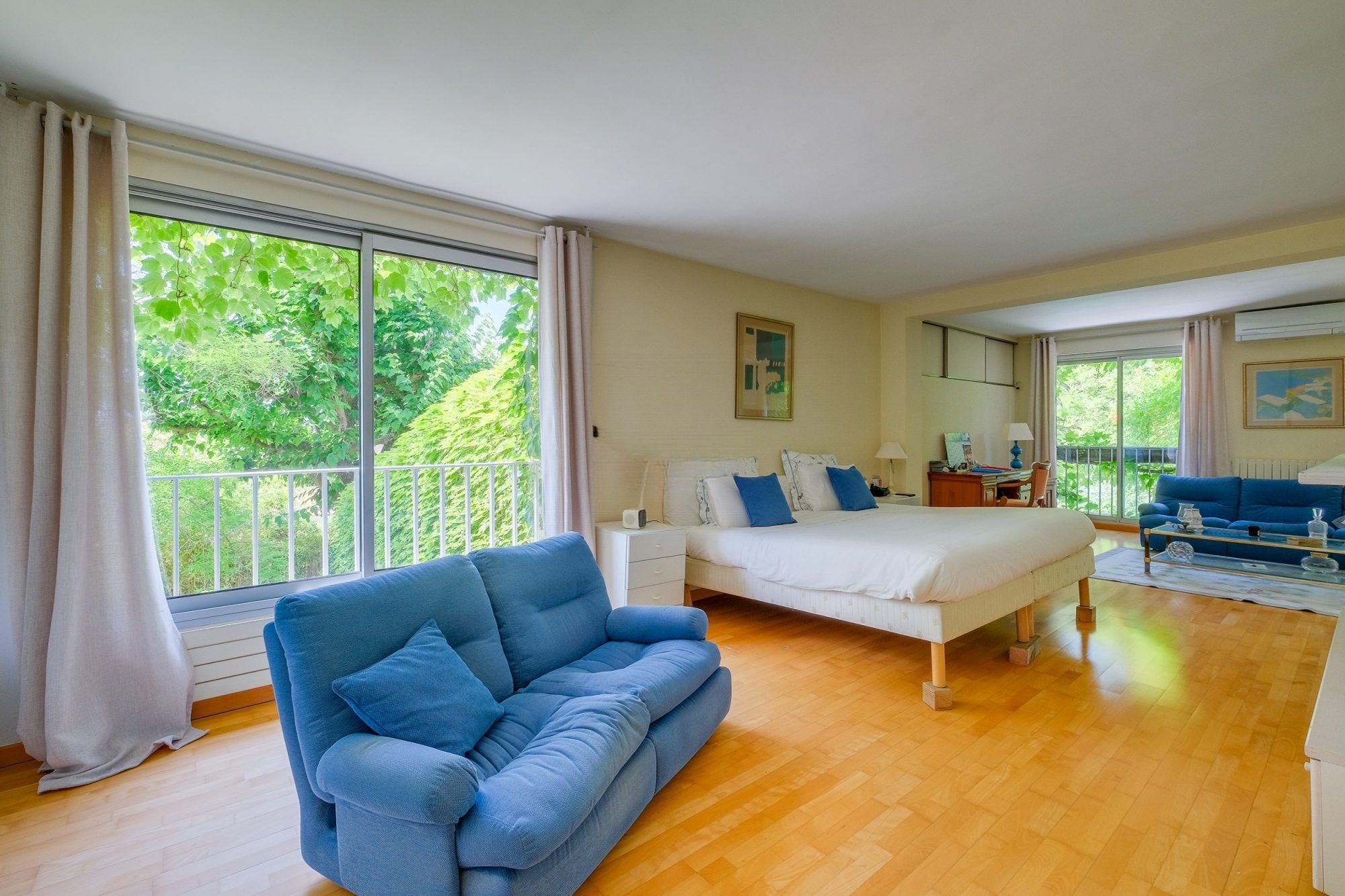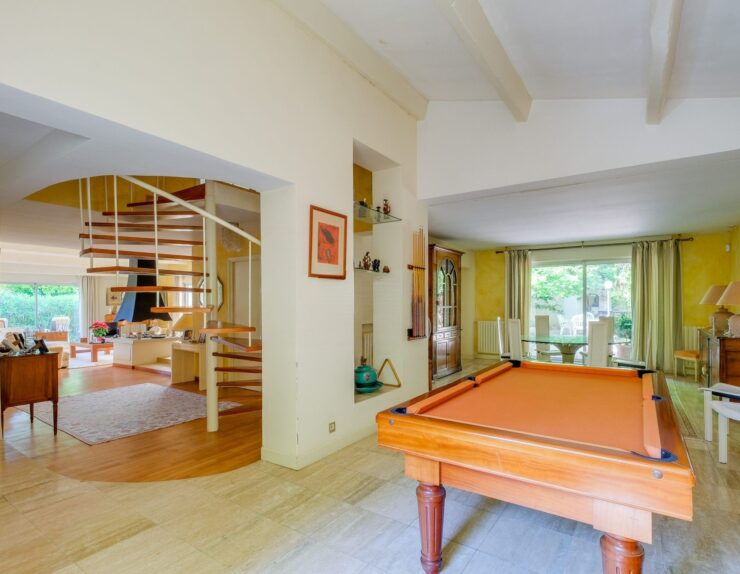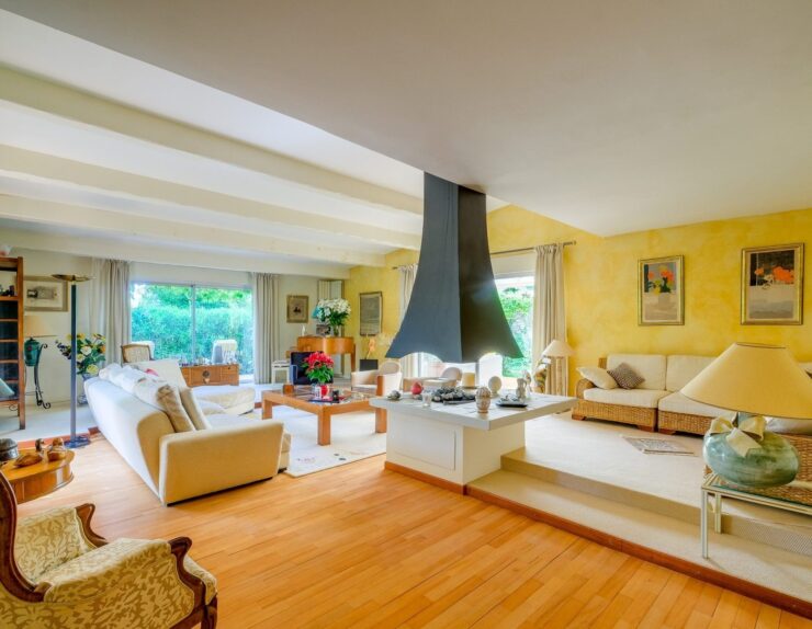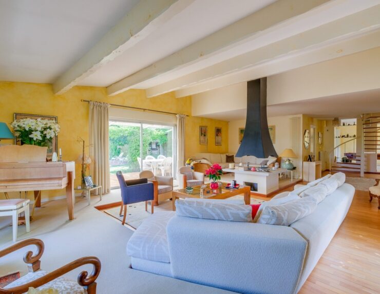 • L’espace de réception : On profite d’un double salon spacieux prolongé par une vaste salle à manger, créant un cadre de vie raffiné et baigné de lumière naturelle, entièrement tourné vers le jardin.