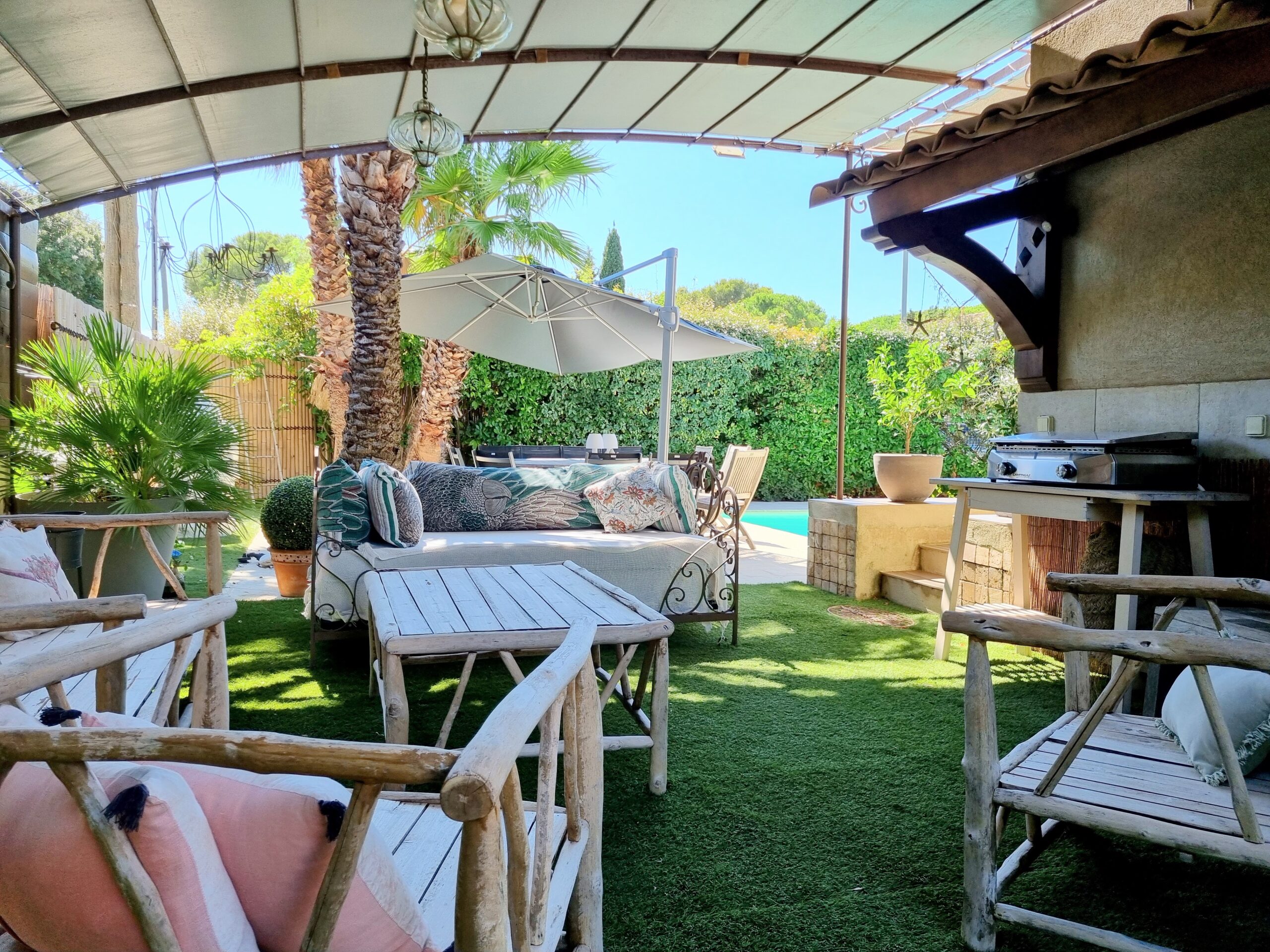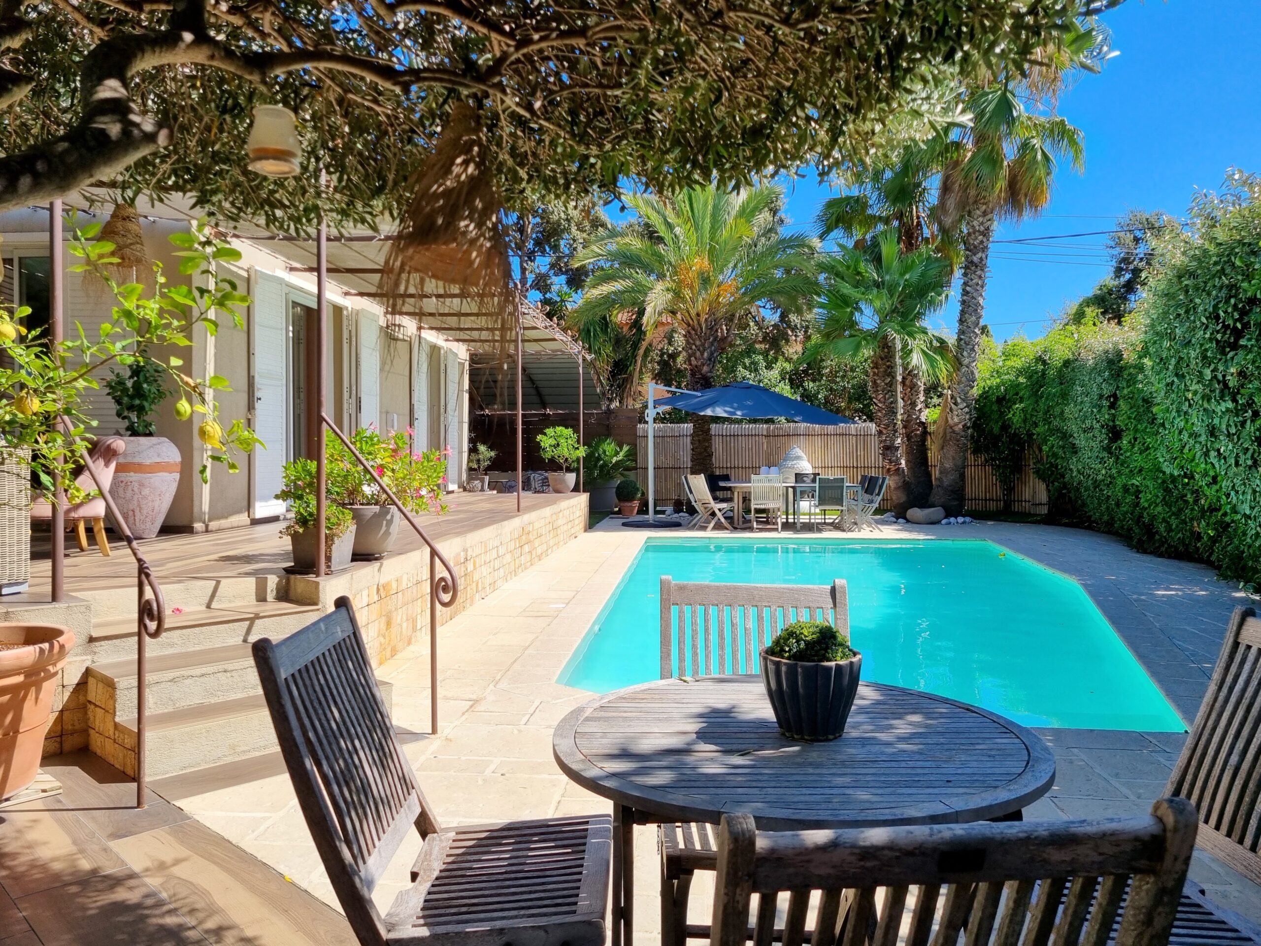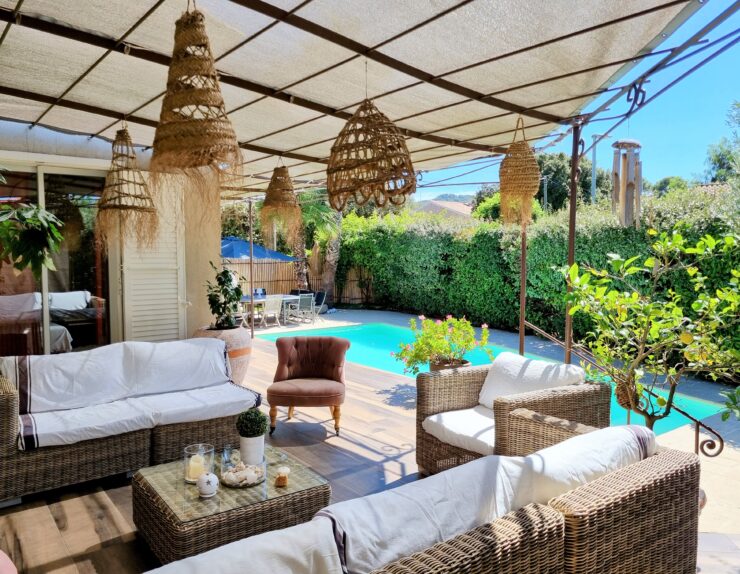 - La piscine & le jardin : Un bassin invitant à la baignade est niché au cœur d’un terrain de 780 m2. La présence d’un forage permet un entretien du jardin à la fois aisé et économique.